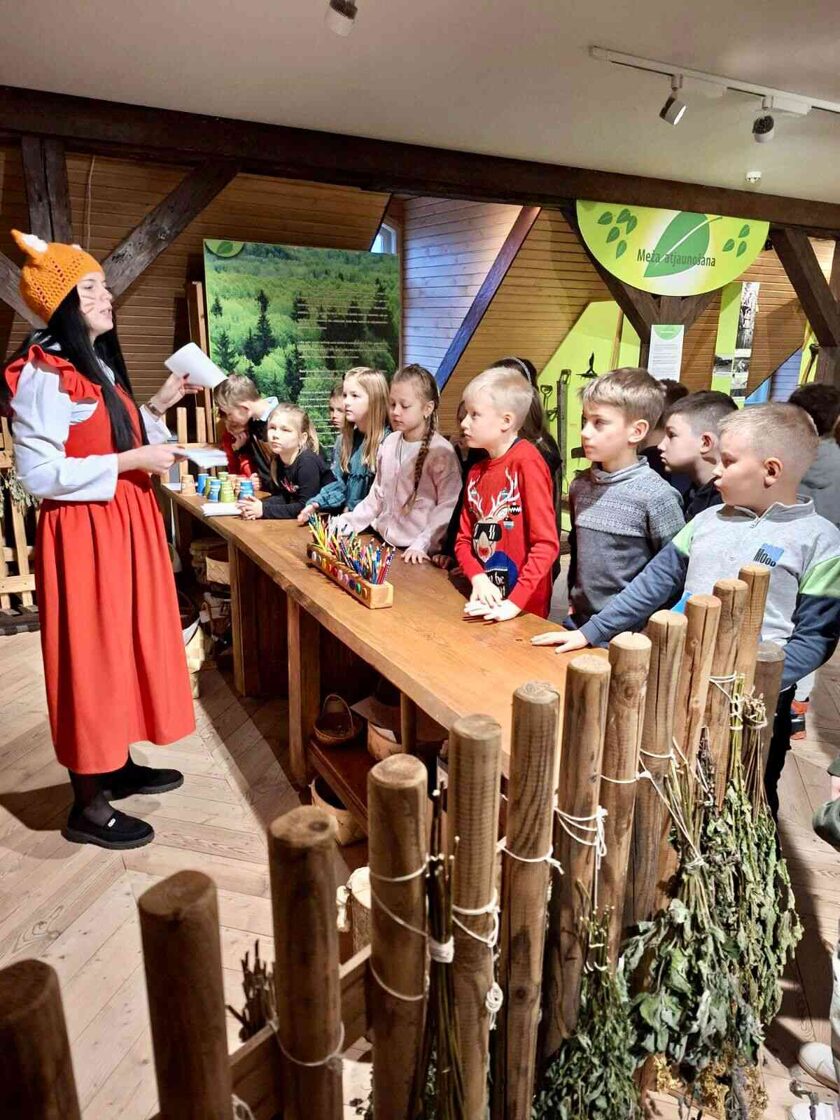 eksponātus, skolēni aizraujošā veidā iepazina dzīvnieku ādas, koku