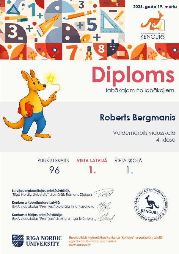 Sasniegums matemātikas konkursā "Ķengurs-2026"
